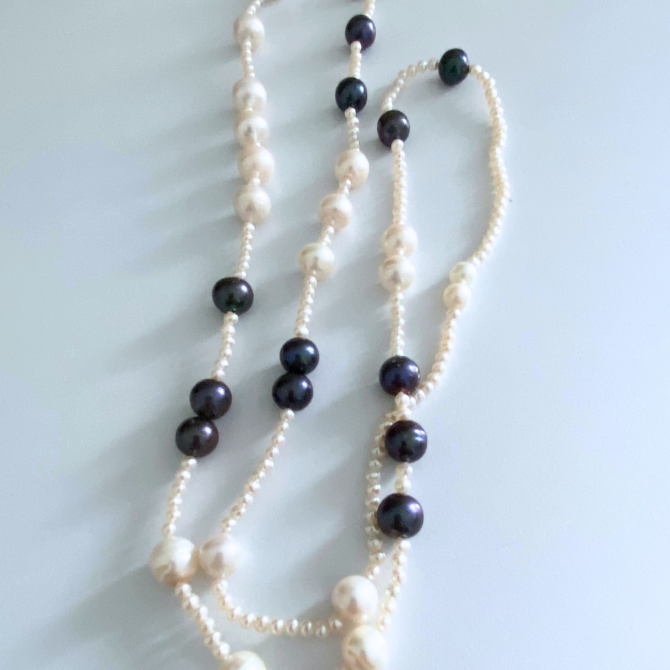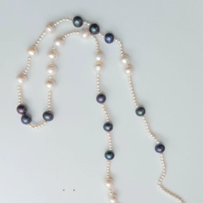 Magnifique sautoir collier avec perles de cultures véritables bleues et ivoires